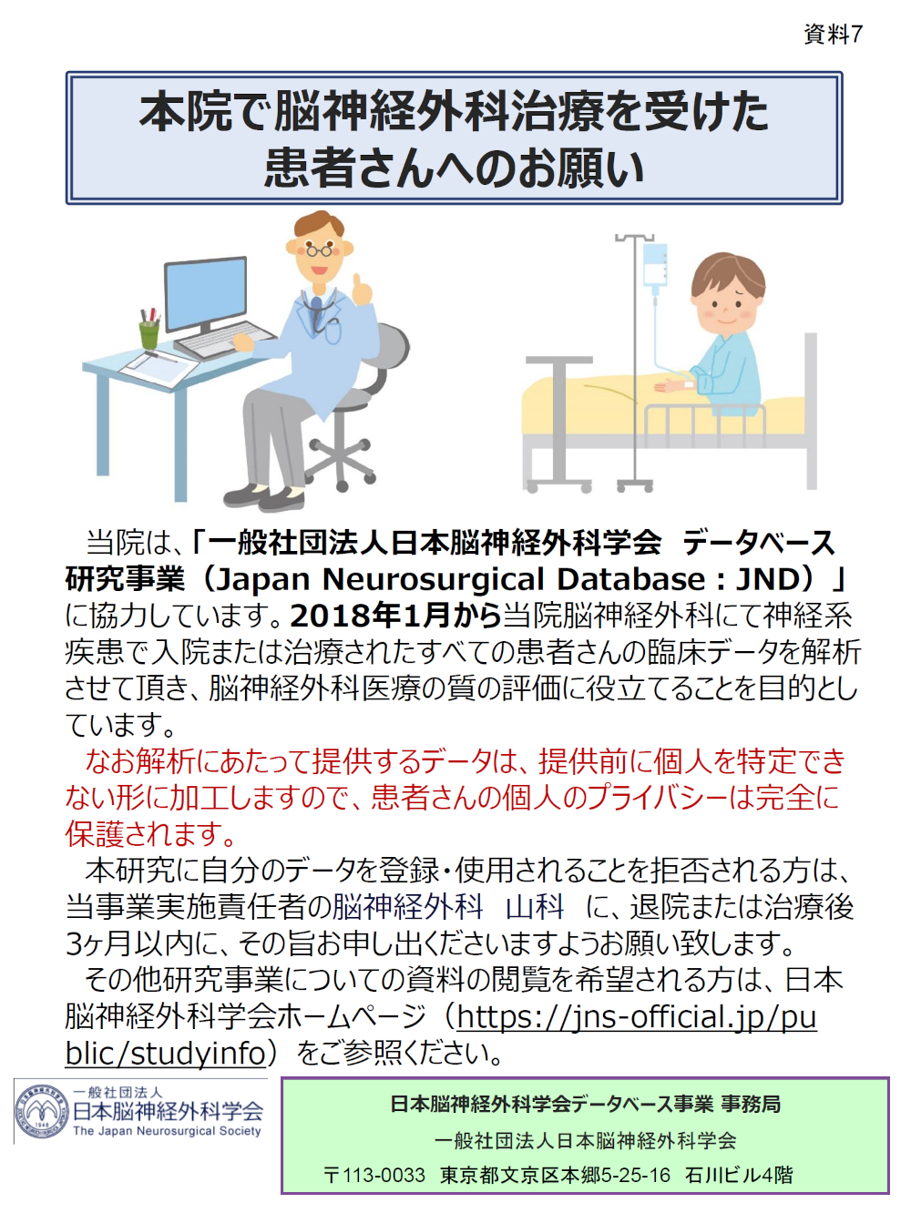 JND(日本脳神経外科学会データベース研究事業)への参加について
