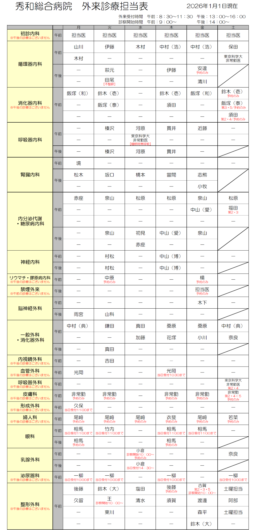 外来診療担当表